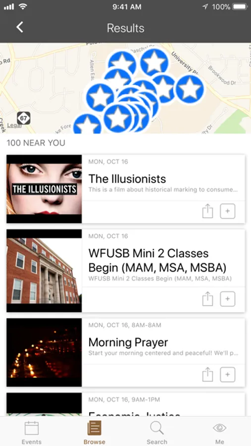 Find out what's going on in the Forest. The WFU Events app keeps you in the know for all university events including academics, athletics, conferences and concerts. It allows you to search, sort and filter events by date, audience or event type, add events to your own calendar, check in on social media and much more.