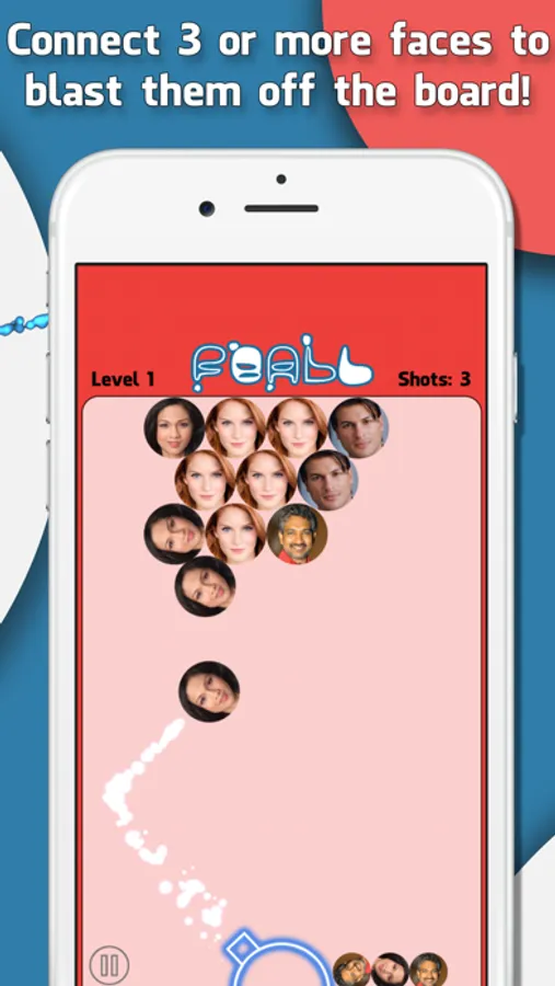Use your friend's faces from FaceBook(c) to play this thrilling match-3 game. Fire the face balls from a cannon and try to group your friends together to clear the board.