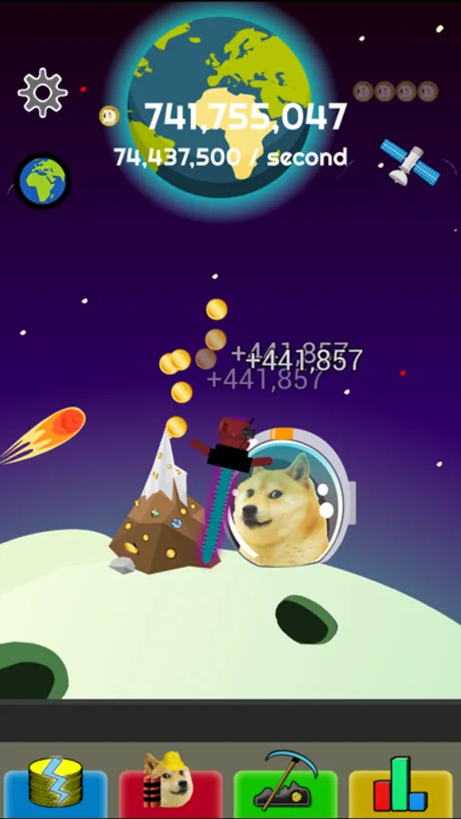 - Mine dogecoins by clicking/tapping on a huge doge coin