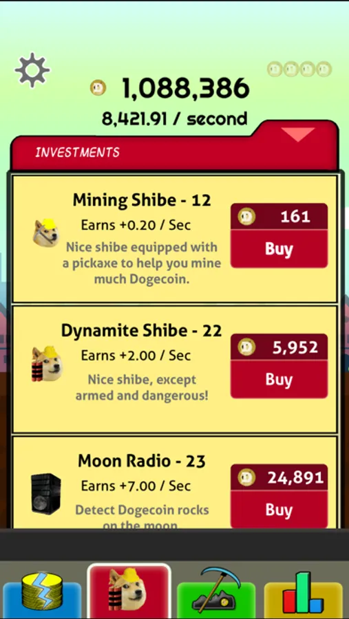 Note: Doge Miner is free to play but does offer in-app purchases for various kinds of things. Any dogecoins acquired through in-app purchases will only work within the app itself and cannot be redeemed, spent, or used in the real world. You can disable in-app purchases in your iOS system settings.