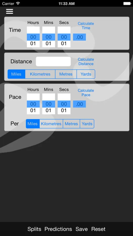 Calculate time, pace and distance. Save a history of your runs for future reference.