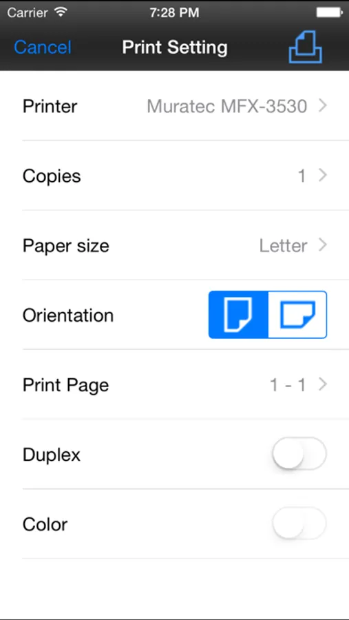 Muratec Mobile for iOS is a mobile print application that enables you to print documents (PDFs) and pictures from your mobile device to a MURATEC MFP that is connected to your wireless network.