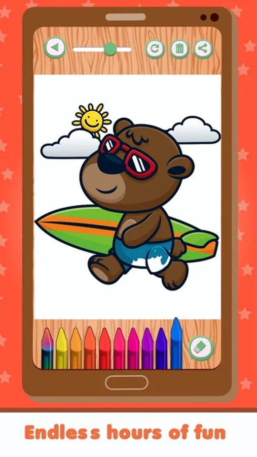 An educational game for coloring, suitable for kids who attend Kindergarten or school. It's perfect for a preschool phase. Possibilities are infinite, sure that you can find one that suits your child's educational needs. You can also send the picture that your kid has colored to friends, relatives or whoever you want. Your children will be very proud of their little masterpiece!