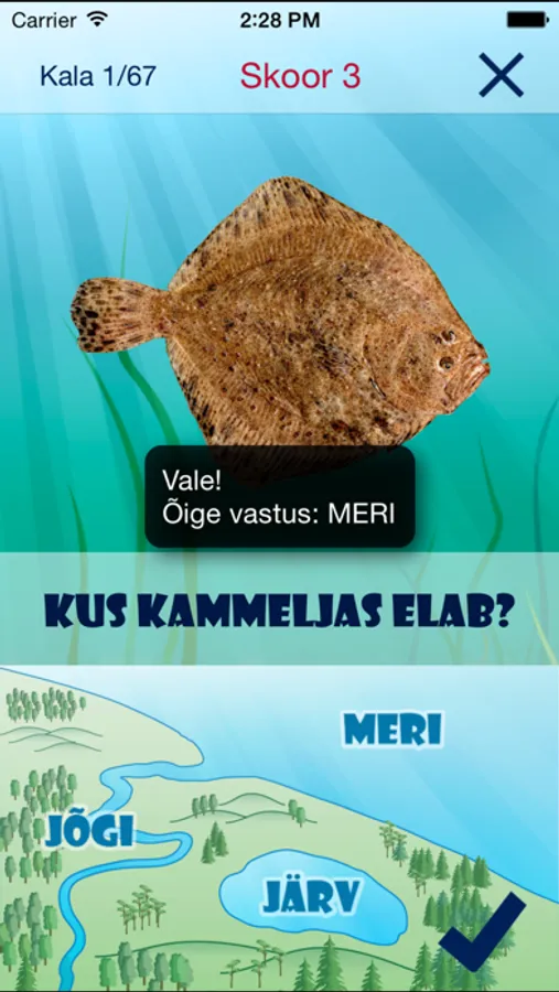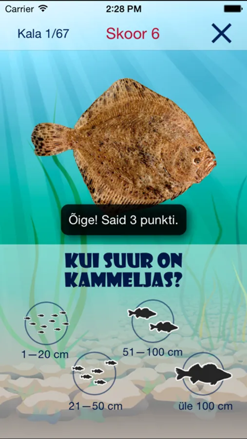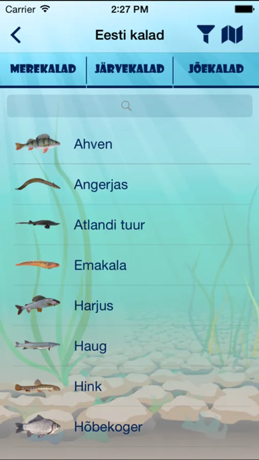 Kalamäng paneb proovile sinu teadmised peamiste Eesti kalaliikide kohta ja juhatab sind veealuse elu argipäeva. Rakenduses tutvustatakse lähemalt 67t Eestis elavat kalaliiki koos piltide ja üldistatud levikukaartidega. Oma mängutulemused saad saata Facebooki.