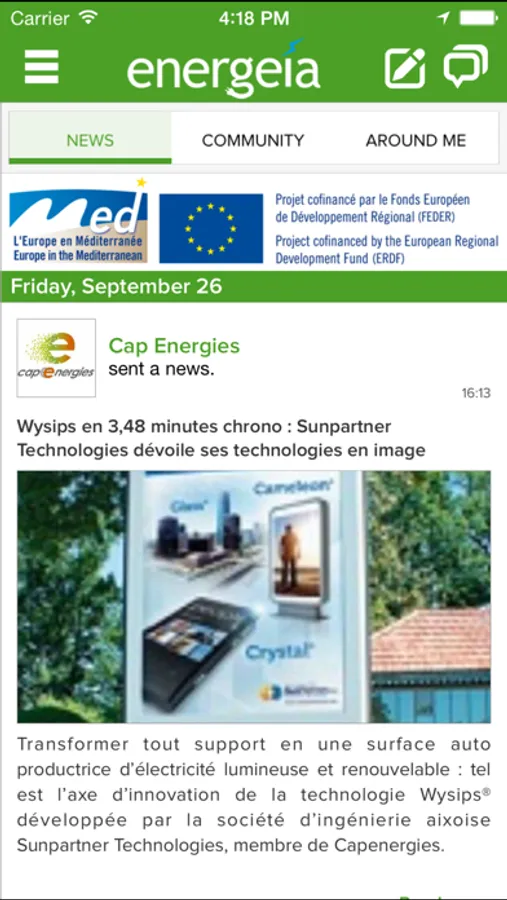 Keep up to date with the Europeen Project Energeia and its different partners with the Energeia App.