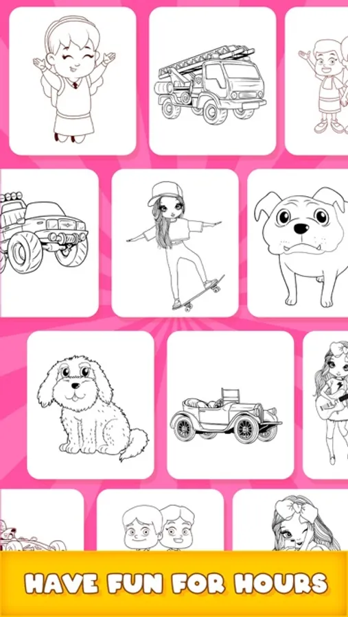 "Enjoy different coloring pages images. Discover drawings of vehicles, animals and different objects. Choose your favorite drawing, play with different color combinations and increase your creativity. A colorful and easy way to;