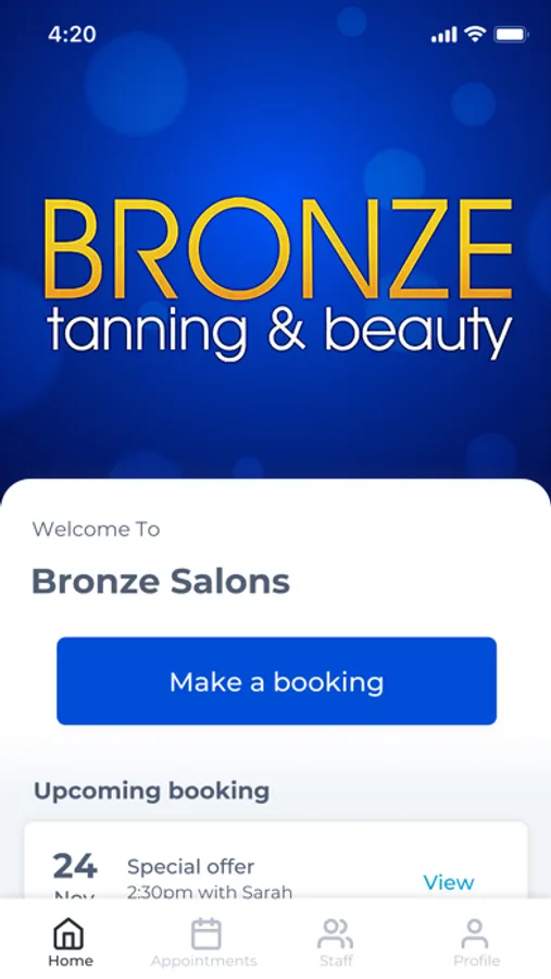 The Bronze Salons app makes booking your appointments and managing your loyalty points even easier. You're just a few taps away from feeling good and looking great!