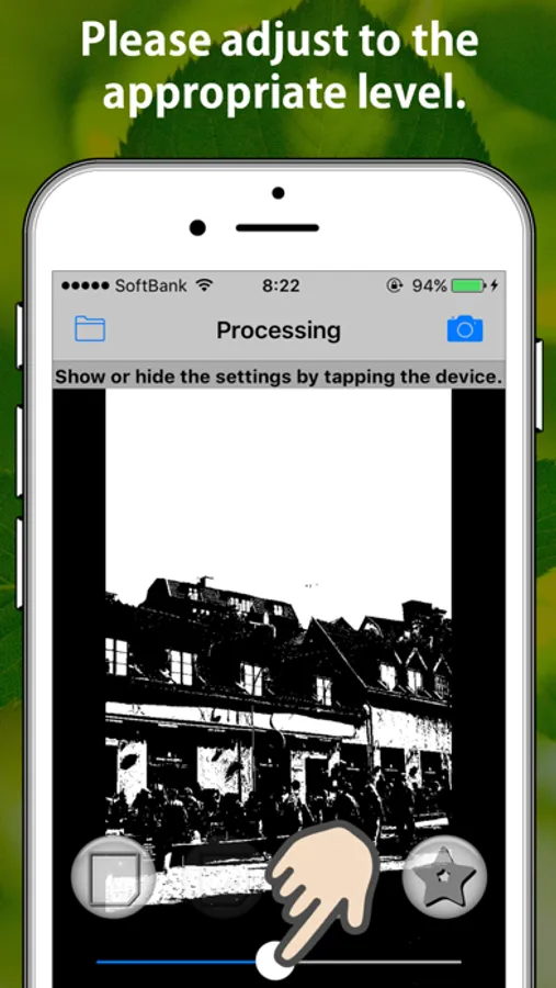 1. Please take a photograph in the "Camera" tab or select a photo in the upper left folder icon.