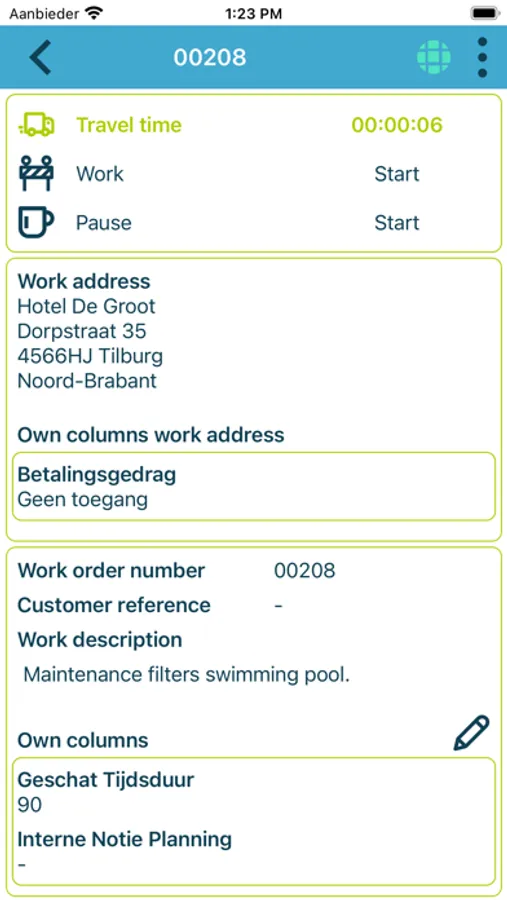 Avoid wasting time by navigating directly to your work address. Because you automatically build up history, you always have insight into previous visits to the same work address. So you are always aware of appointments made and previous work. Thanks to the rescheduling option, you can easily add periodic maintenance to your work order. Fast and smooth communication between the office, the employees in the field and the customer ensures pleasant cooperation!