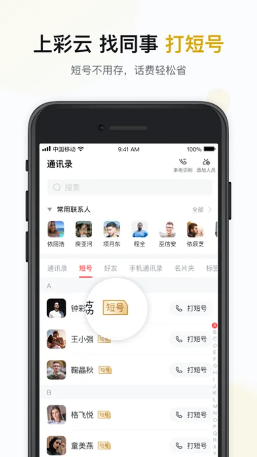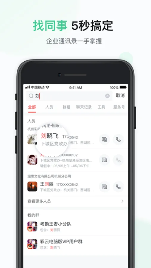 【彩云通讯录】全面整合企业/个人/好友的通讯录,完整组织架构,5秒找同事。