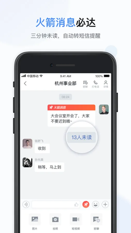 【即时聊天】专注同事工作聊天,安全聊天阅后即焚,必达消息3分钟未读短信送达。