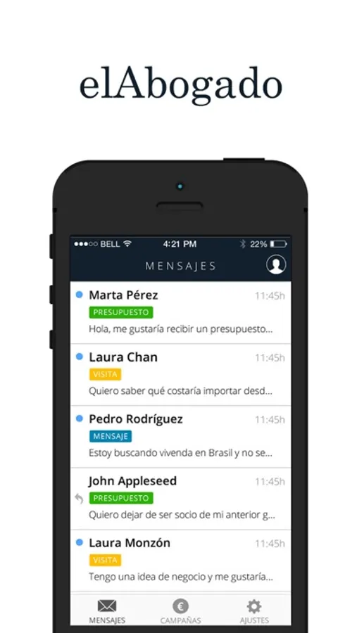 Bienvenido/a al panel de clientes para profesionales de elAbogado. Inicia sesión con tu cuenta de usuario y gestiona los mensajes, presupuestos y peticiones de visita de tus clientes desde tu iPhone. Consigue más clientes creando tus propias campañas.