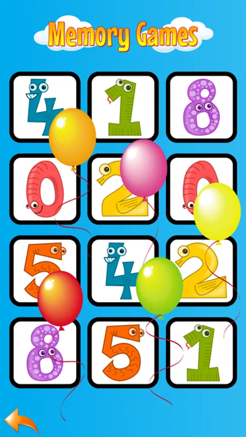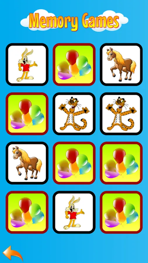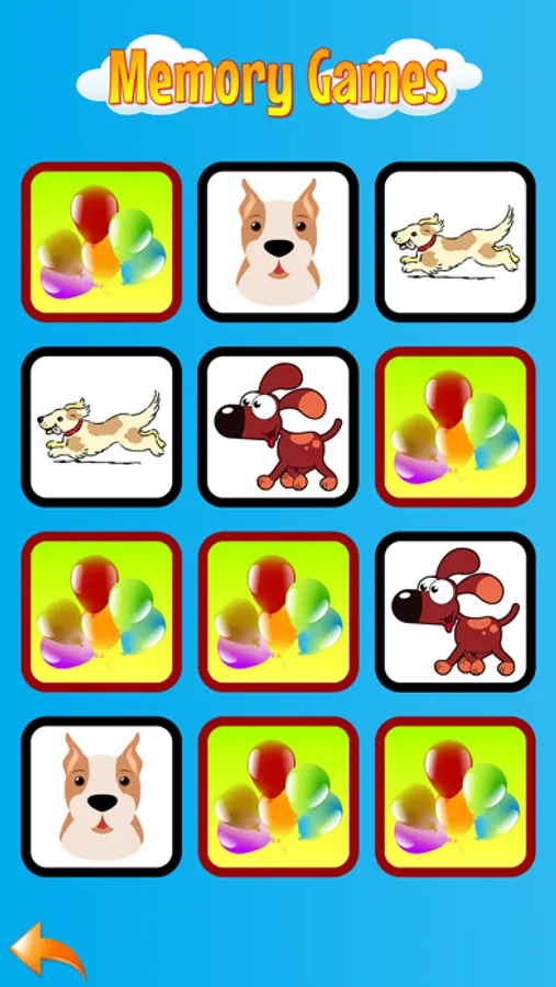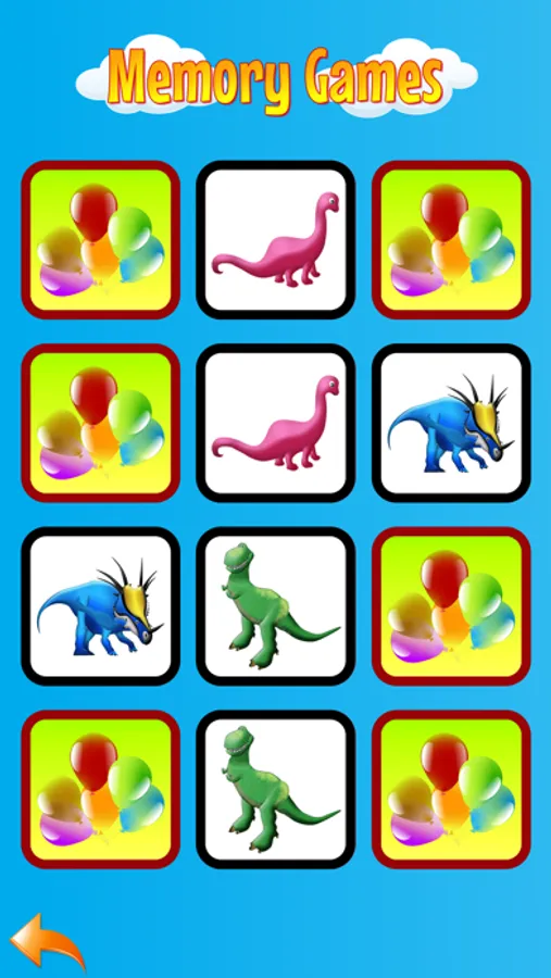 Initially you will see all memory cards turned face down. Select two of the cards by tapping on the card, if the cards are not the same, they will be covered up again, remember what is on the cards so you can find all the matching pairs.