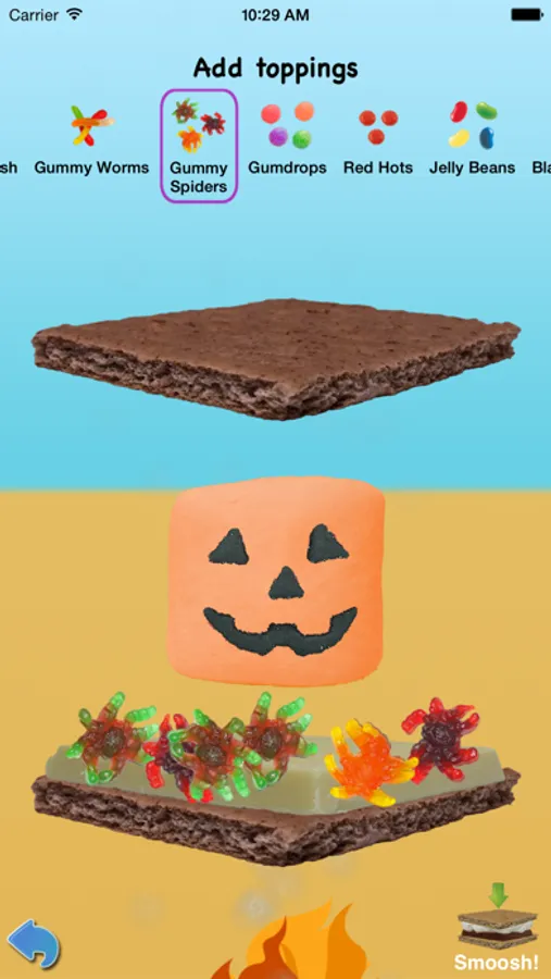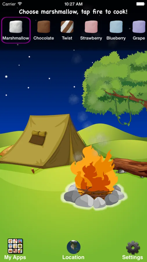 Roast marshmallows and smoosh them between graham crackers & chocolate- everyone wants some more! All the fun of making smores on your phone or iPad, with no sticky fingers. Pick different flavors of graham crackers & cookies, all kinds of chocolates, toppings, and even different places to camp out!