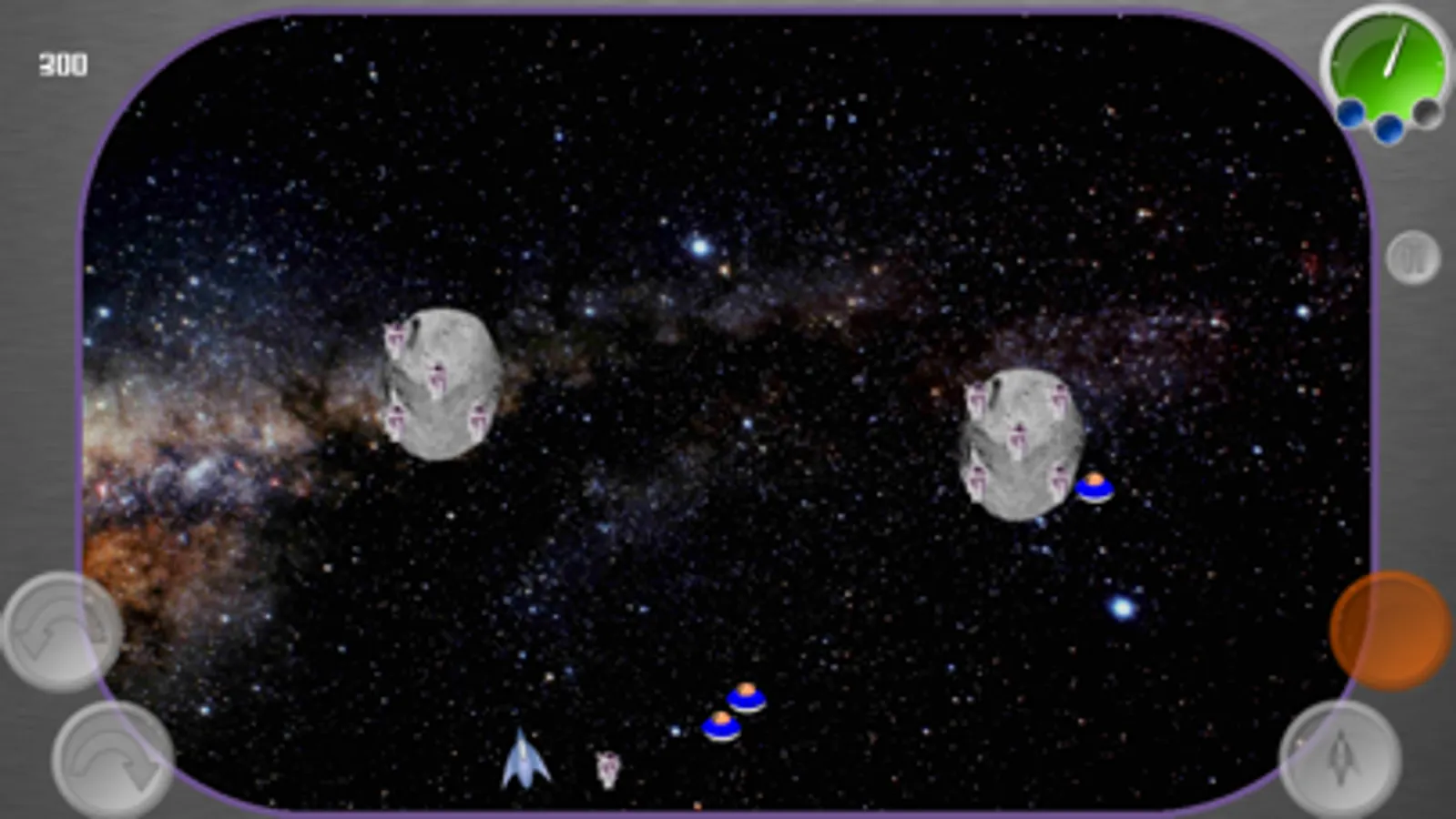 Keep yourself and the astronauts alive. Wave after wave of aliens will attack you will bullets and space mines. Pick up floating astronauts and return them to asteroids before you are destroyed or they float off into deep space.