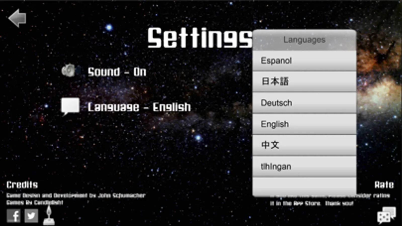 Achievements, Facebook and Twitter bragging also available in Space Mission: Survival.
