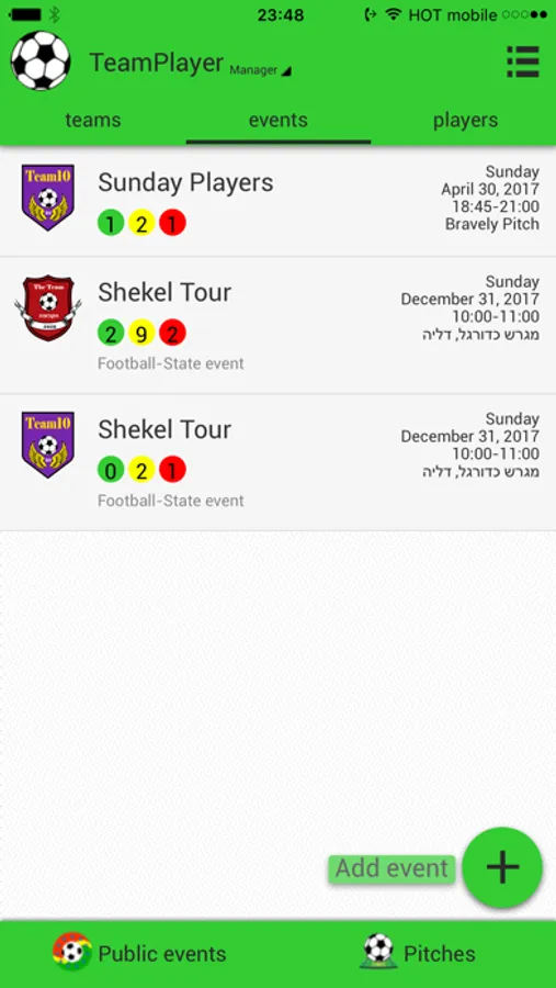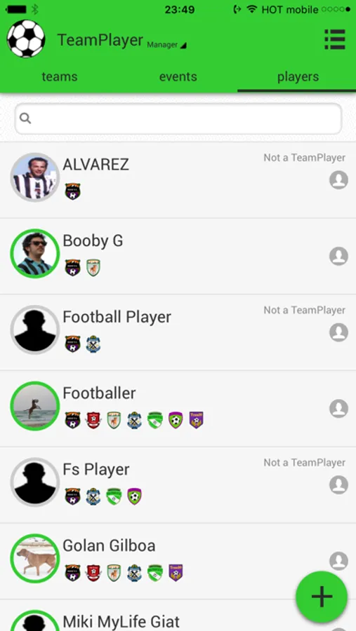 TeamPlayer is designed to assist football team managers in managing teams, players and events. As a team manager you can create a new team, add new players from your contacts, open new events, invite players to participate in the event and receive feedback from players in real time, so you can keep track of your lineup towards upcoming events.