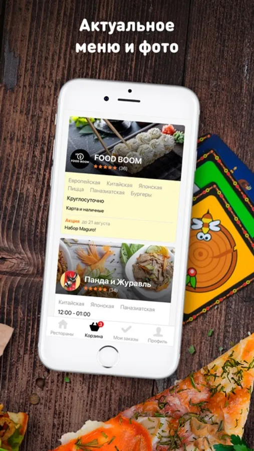 – Пицца, суши, роллы и широкий выбор других блюд от партнеров;