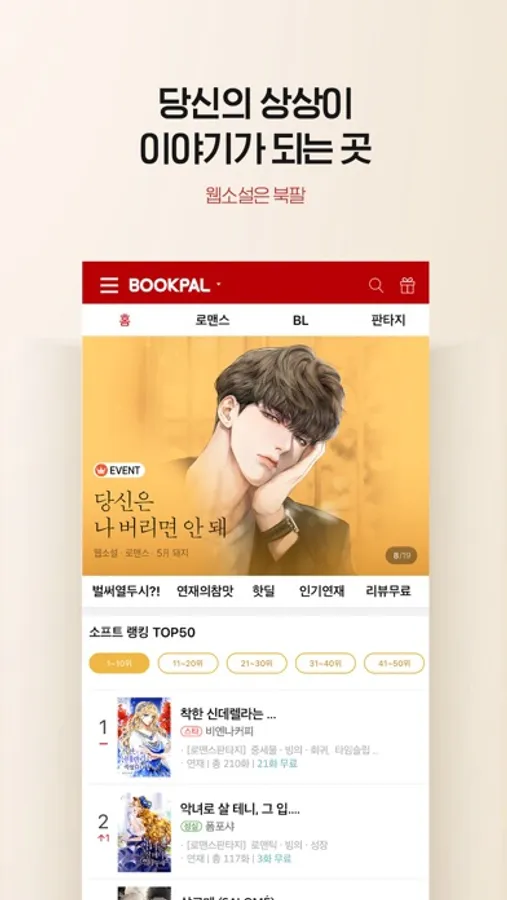 - 북팔의 선독점 작품을 매일 1회차씩 무료로 즐겨보세요!