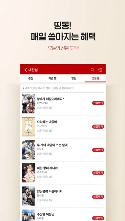 - 다양한 작품의 무료 선물이용권들이 쏟아집니다!