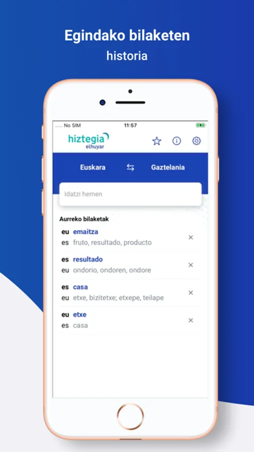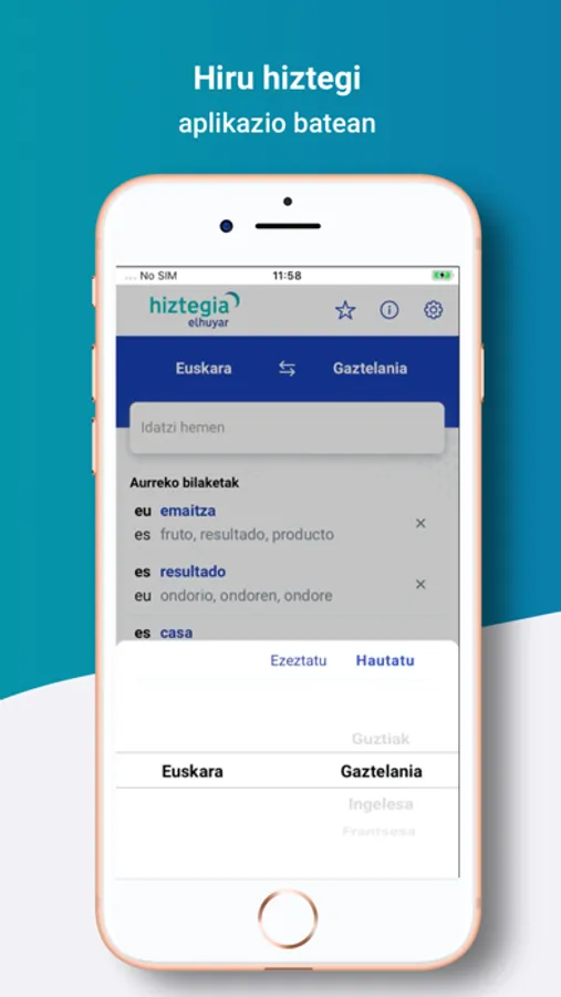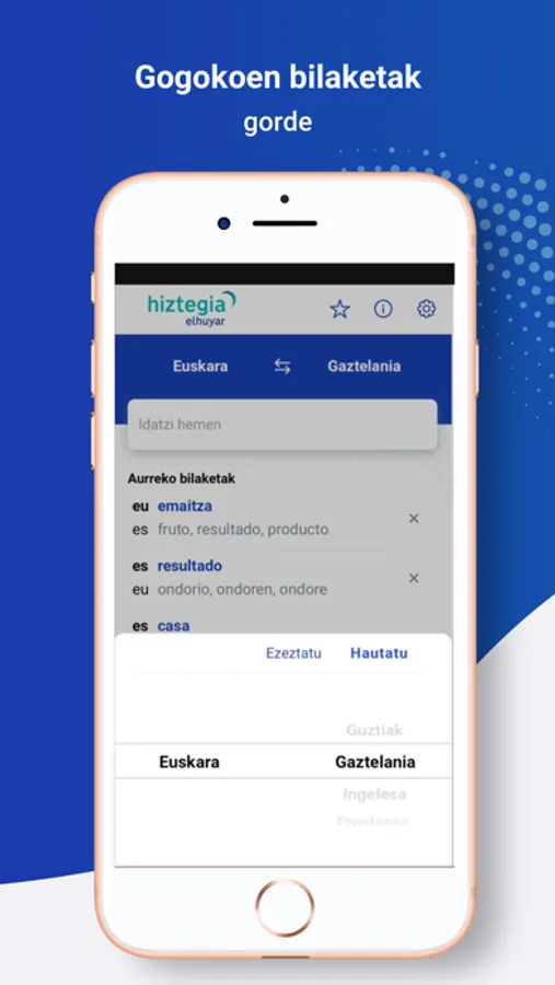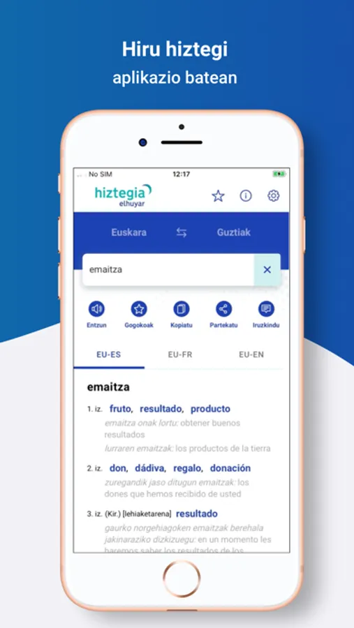 Elhuyar hiztegi elebidunak mugikorretan erraz kontsultatzeko aplikazio berria da. Aplikazio bakar batean ondoko hiru hiztegietan bilaketa egiteko aukera izango duzu: