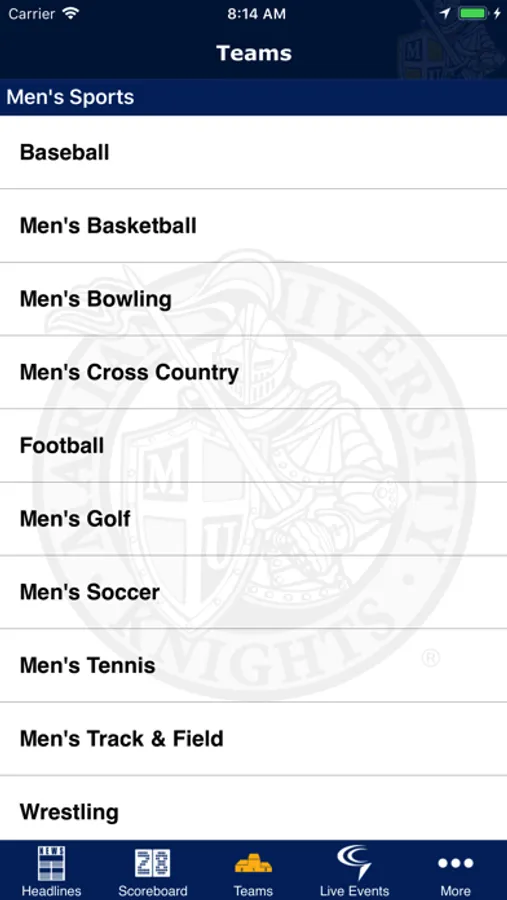 Welcome to the official application of Marian University Knights Athletics. In conjunction with our official home, MUKNIGHTS.com, this app provides the best coverage of all 21 Knights athletics programs in one easy to use format.