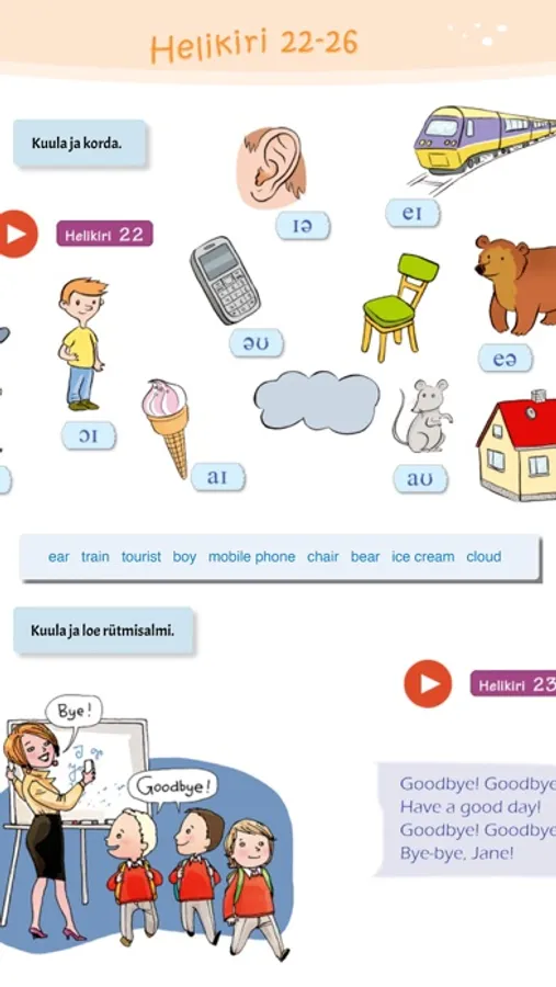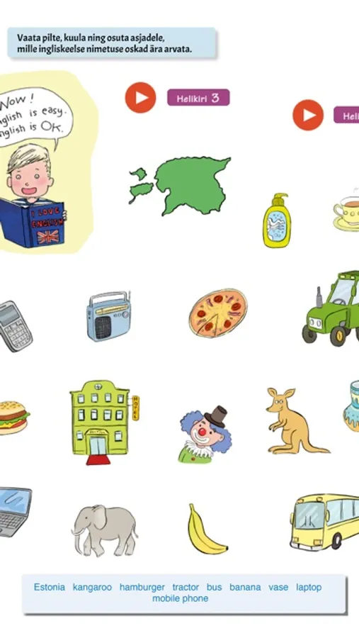 “I Love English 1 suuline eelkursus” on samanimelise õppekomplekti suulise eelkursuse digiversioon. See sobib harjutamiseks nii koolitunnis kui ka kodus. Tutvutakse häälikute ja sõnadega, õpitakse ära hääldusmärgid, harjutatakse dialooge ja rütmisalme. Puudutusel kõlav hääldus muudab õppimise mõnusalt kaasaegseks. Videod rütmisalmide esitustega annavad õpetajatele ja vanematele ideid lõbusateks liikumisseadeteks.