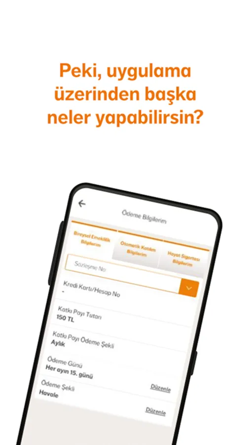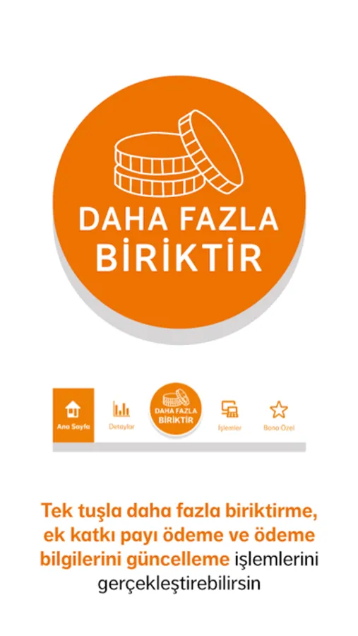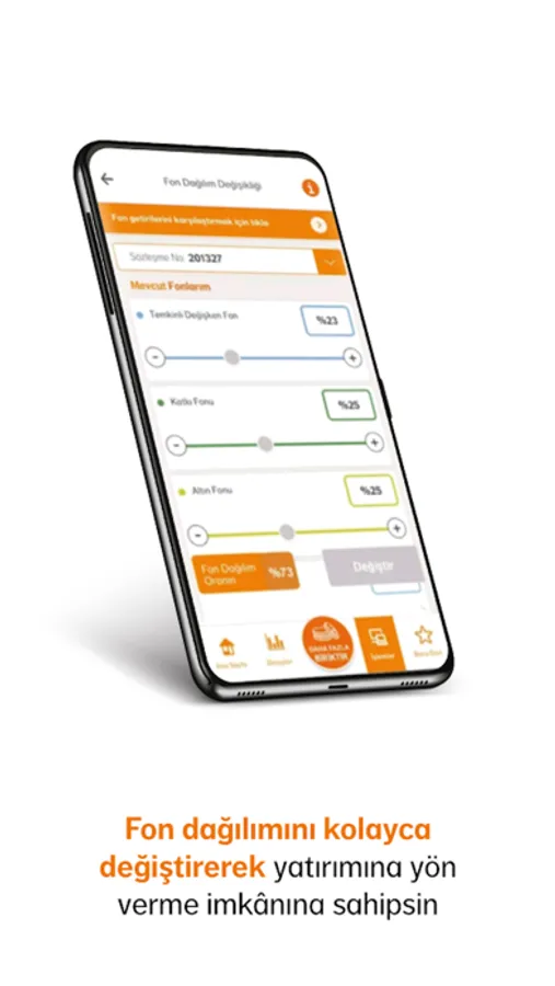 Aradığın bilgilere kolayca ulaşabilmek için ister arama çubuğunu kullanabilir istersen de ‘’sesli arama’’ özelliğinden yararlanabilirsin. Sözleşmelerinde değişiklik yapabilir, farklı bir katkı payı tutarı belirleyebilirsin. Uygulama içerisinde kolaylıkla fon karşılaştırması yapabilir, fon dağılımını değiştirebilirsin.
