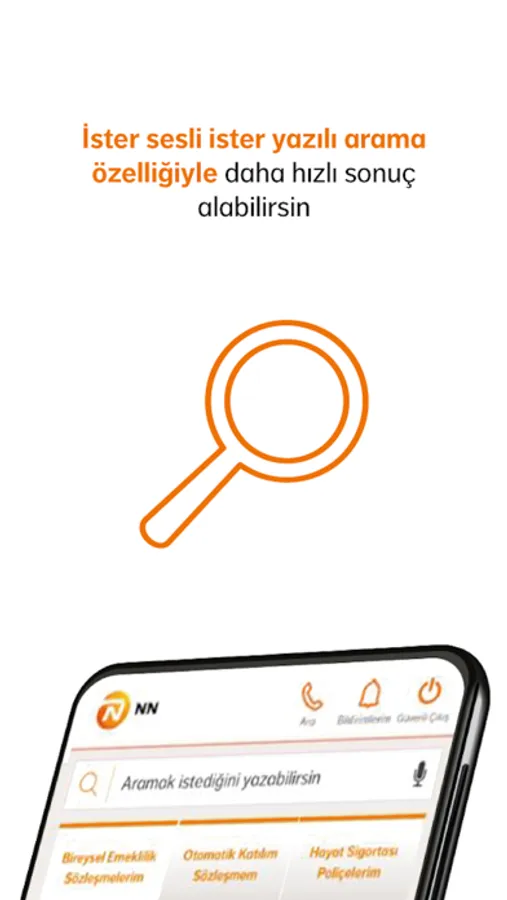 Kullanıcılarımızın işlemlerini daha kolay ve hızlı yapabilmeleri için NN Hayat ve Emeklilik Senin Mobilin uygulamamız yenilendi. Uygulamaya TC kimlik numaran ve şifrenle giriş yapabilirsin.