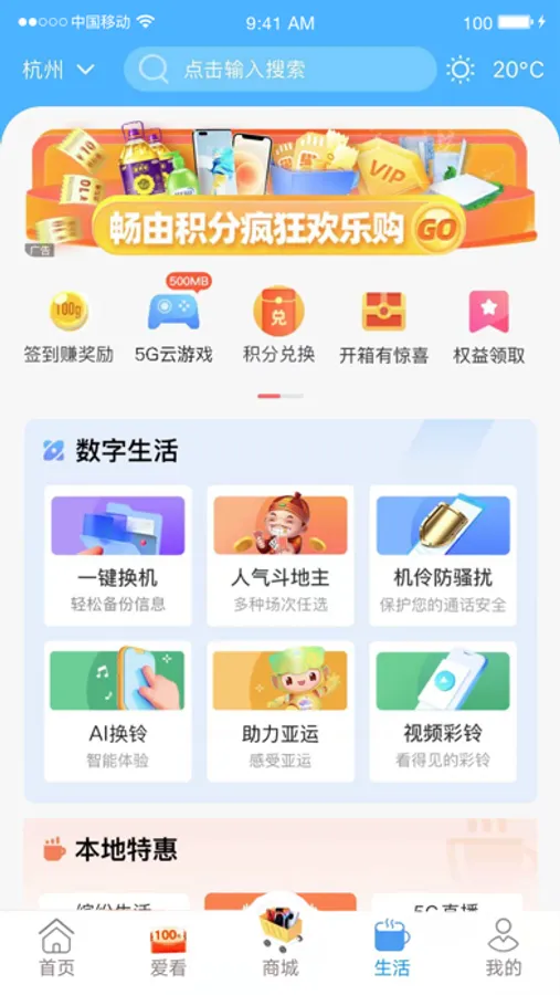中国移动浙江App是面向浙江移动客户,为其提供快捷业务查询、话费充值、流量加“油”、套餐办理、手机超值购等电信服务的通讯软件。同时还可支持用户畅享咪咕影院的海量电影,玩转流量红包,快捷办理安心小号,保障您的手机号码安全,更有一键水电煤生活缴费等生活服务。中国移动浙江App致力于成为浙江移动用户的掌上生活管家,让您随时随地尽享浙江移动的贴心服务,方便触手可及!