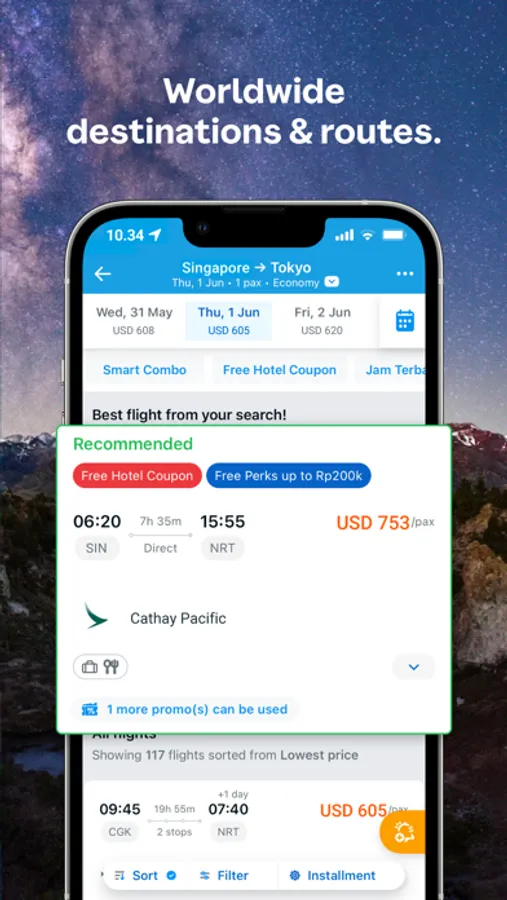 Every day, Traveloka offers the best deal price for transportation and accommodation booking. It’s time to pack your bag and install the Traveloka app.