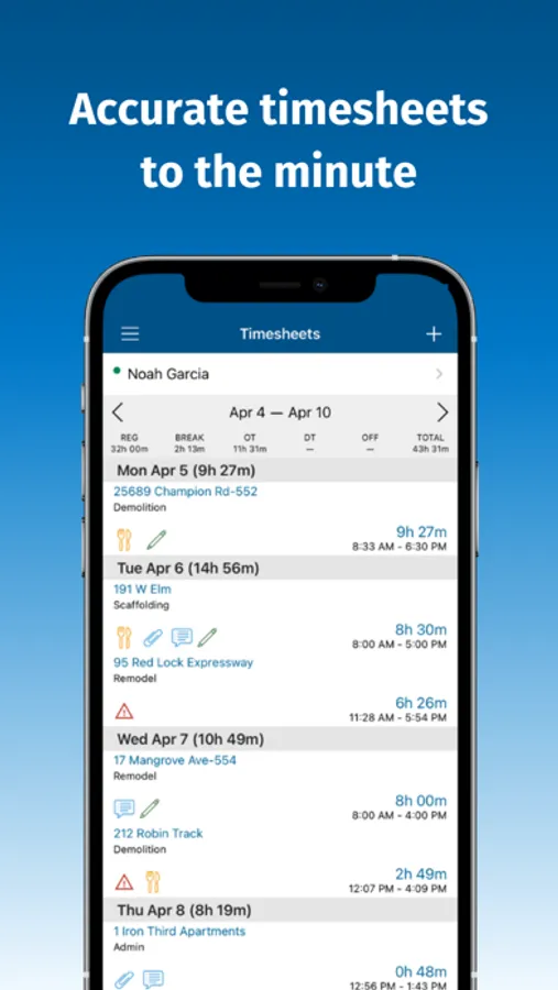 ● Remind your crew to clock in and out when they’re near the jobsite with geofencing technology