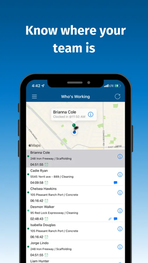 ● Only see your team’s location when they’re clocked in—not when they’re clocked out or on a break