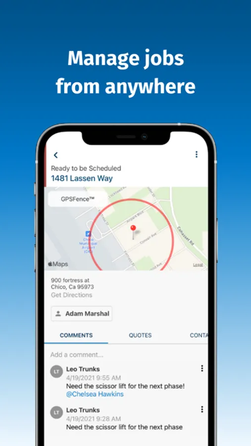 ● Leave comments, attach photos and other documents, and chat in real time about each job in the app