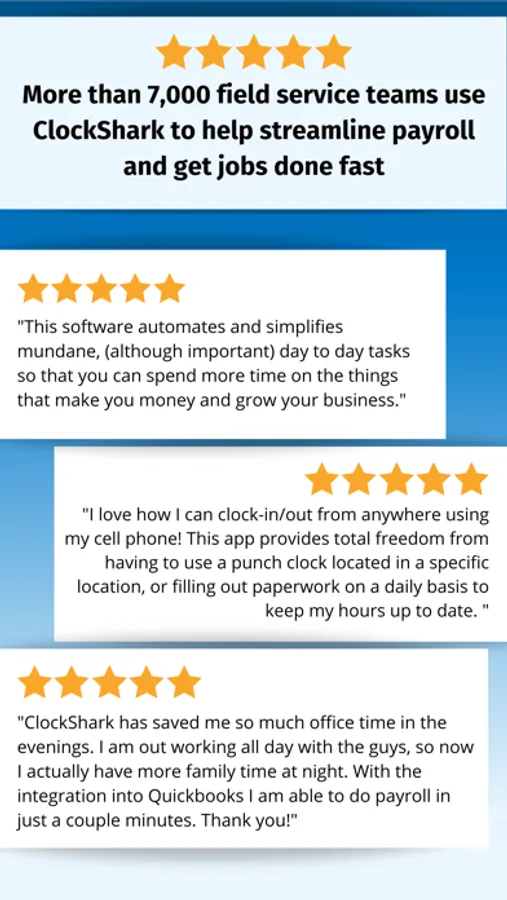 Note: To use the ClockShark mobile app, you need an active trial or paid subscription. Start a free trial at www.clockshark.com/signup.