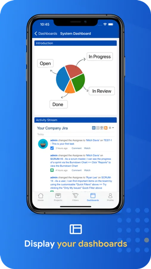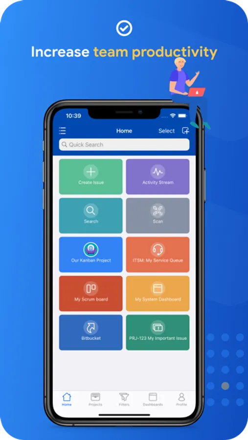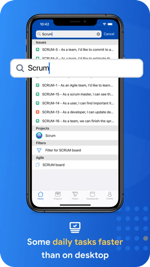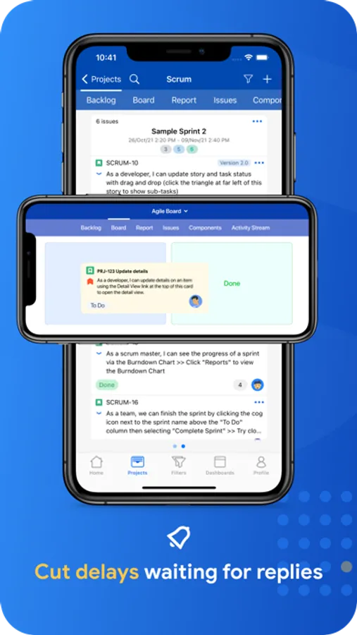 Increase Team Productivity and cut delays waiting for replies. Team members never miss important updates with push notifications and the ability to comment, edit, prioritize, approve, and create whenever or wherever. Full access to Agile boards, backlogs, service management queues, asset management, dashboards and makes data of important Atlassian Marketplace apps seamlessly accessible on mobile.