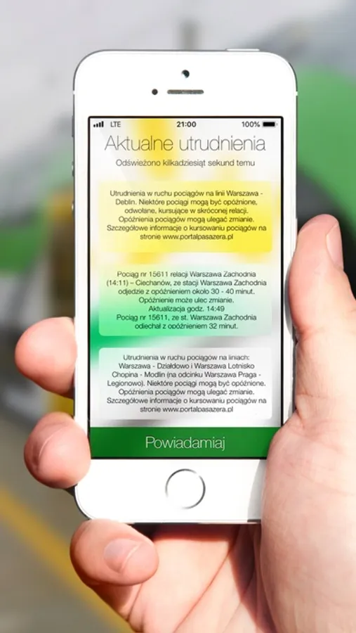 Nie daj się zaskoczyć opóźnieniem pociągu i włącz powiadomienia dla tras, na których zwykle podróżujesz - wtedy nawet bez włączonej aplikacji otrzymasz alert o ewentualnych utrudnieniach.