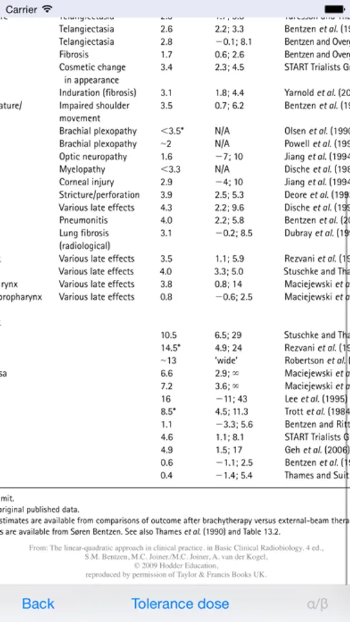 - You can refer alpha/beta ratio and tolerance dose tables in this App.