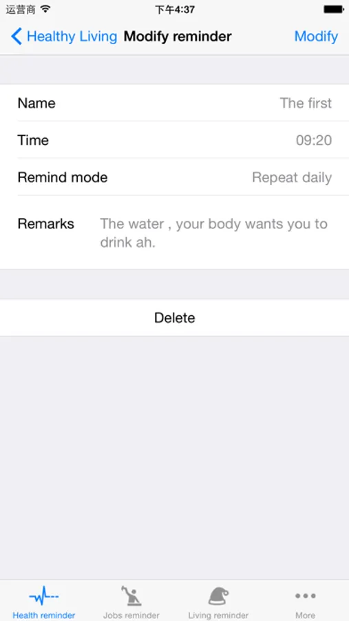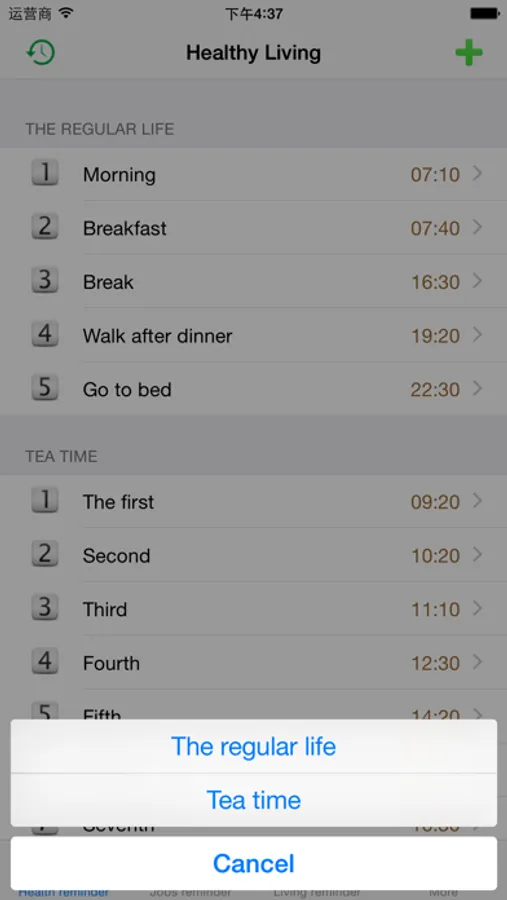 Include: morning exercise, eat breakfast, eye exercises, lunch, afternoon tea, dinner stroll, sleep reminder. 1500CC drink daily reminder.