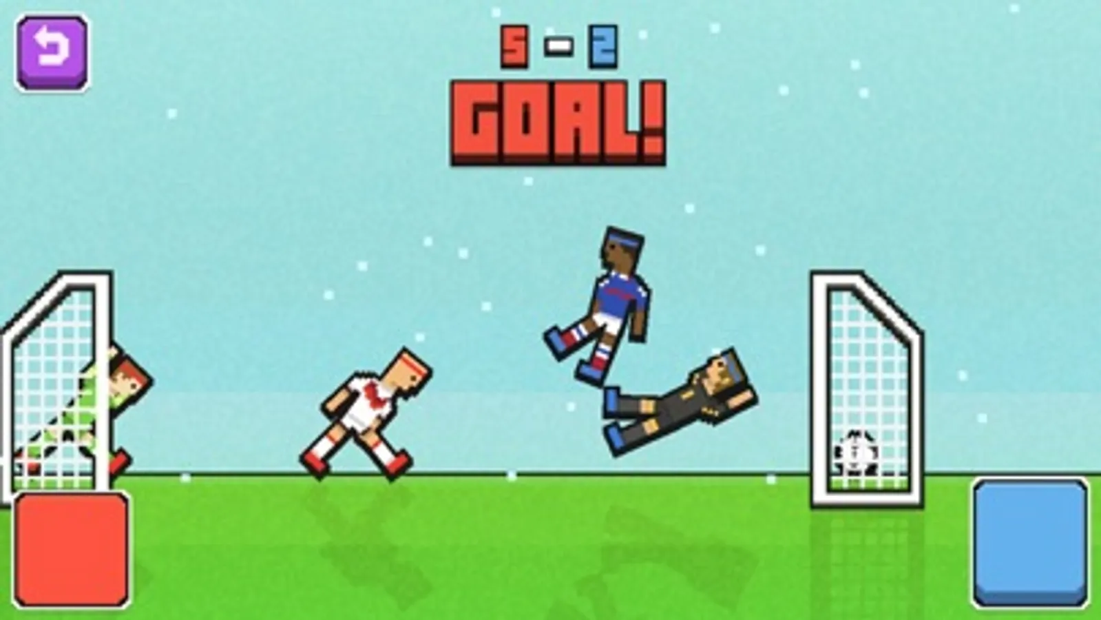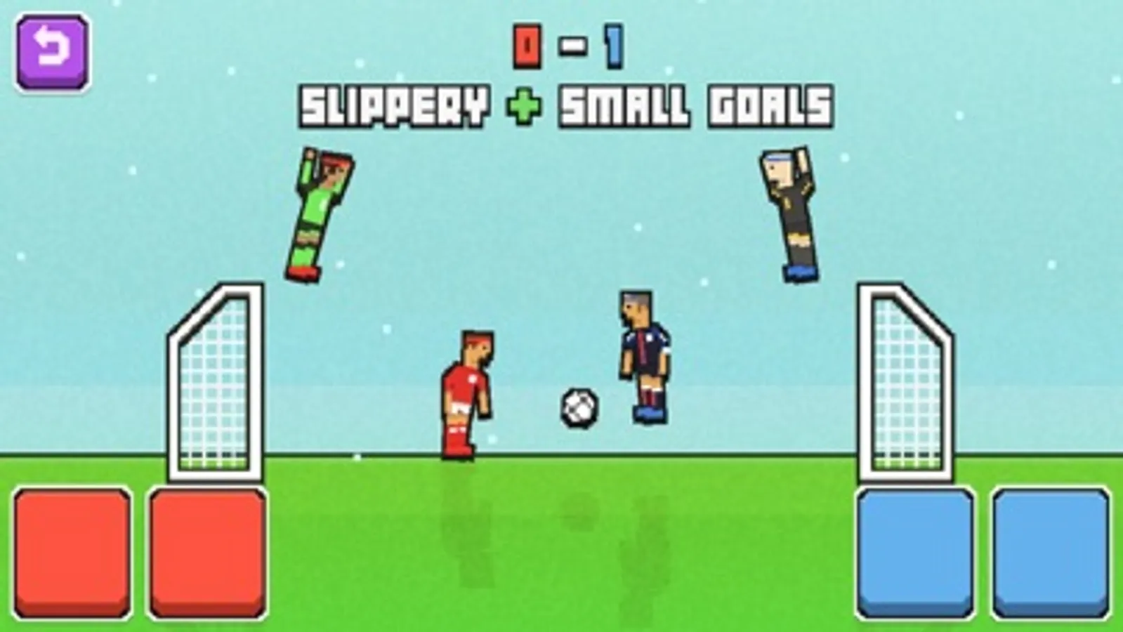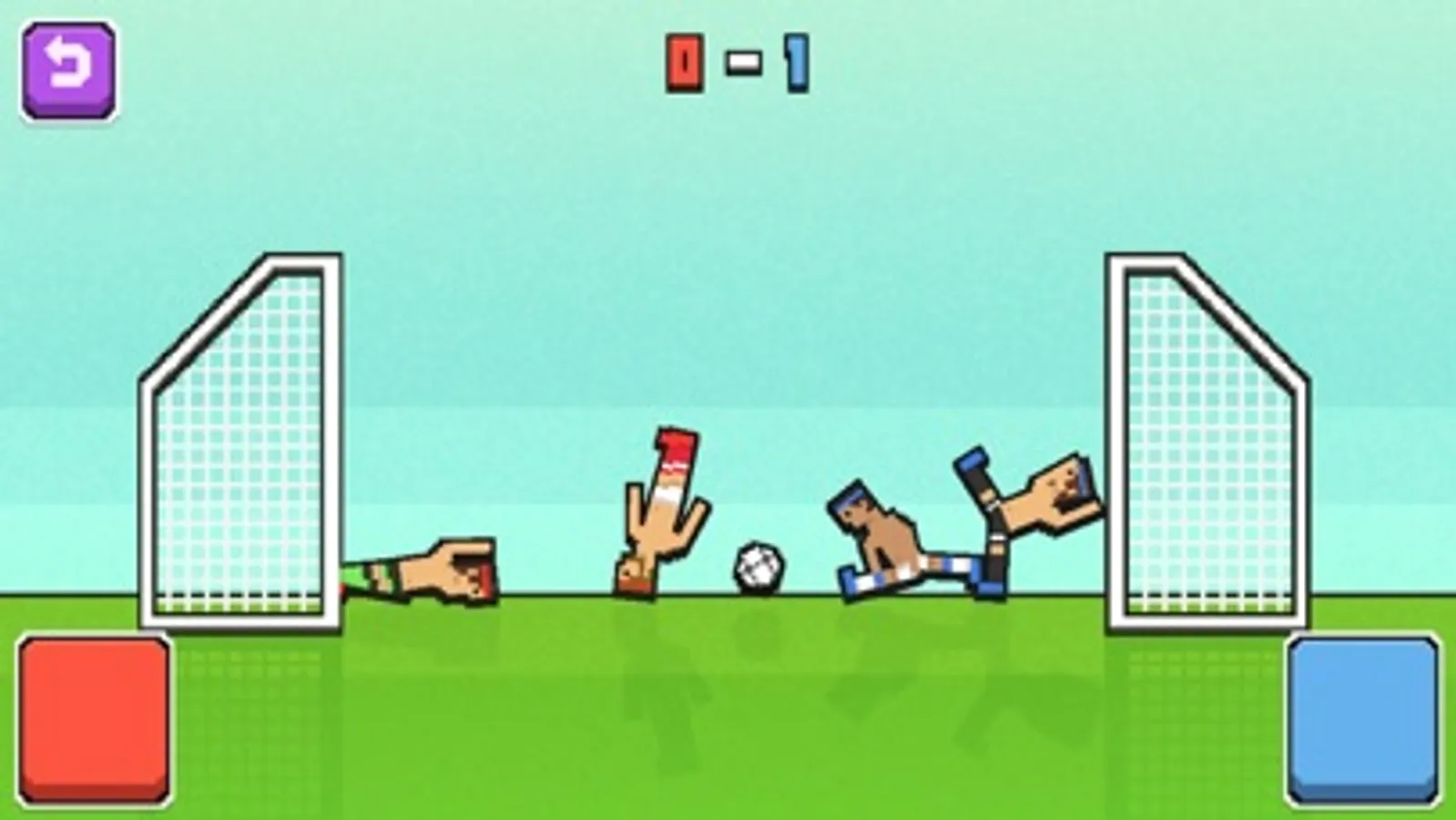 Tap the button to jump and kick. You control both your soccer players with just one button. Kick the ball into your opponent's goal to score.