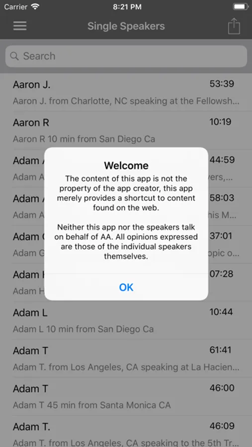 The AA speakers app allows you to listen to recovery speakers, workshops and audio books from Alcoholics Anonymous (a 12 step program) whenever and wherever using simply a wifi or cellular network connection.