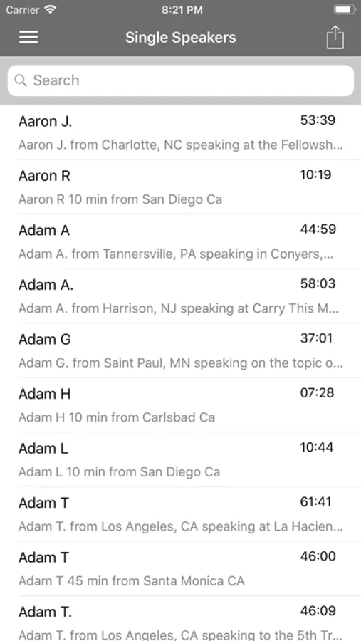 300+ speakers speaking at Alcoholics Anonymous conventions worldwide with descriptions of where they are from and where they are speaking.