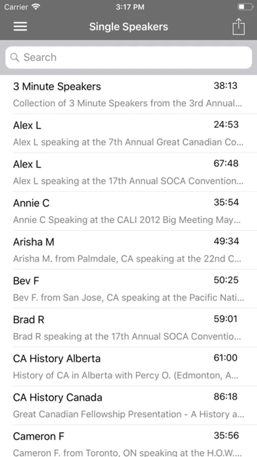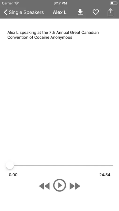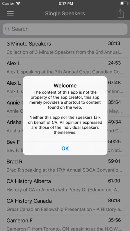 The CA speakers app allows you to listen and download to recovery speakers, workshops and audio books from Cocaine Anonymous (a 12 step program) whenever and wherever using simply a wifi or cellular network connection.
