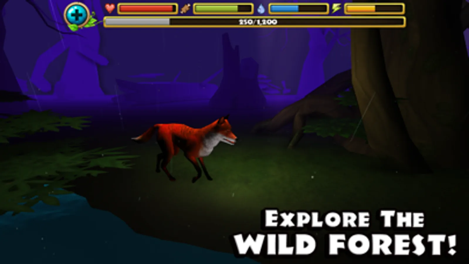 + HUGE 3D ENVIRONMENT - Your fox is free to roam a massive open-world forest filled with dangerous carnivores, hidden areas, and sparkling pools of water!