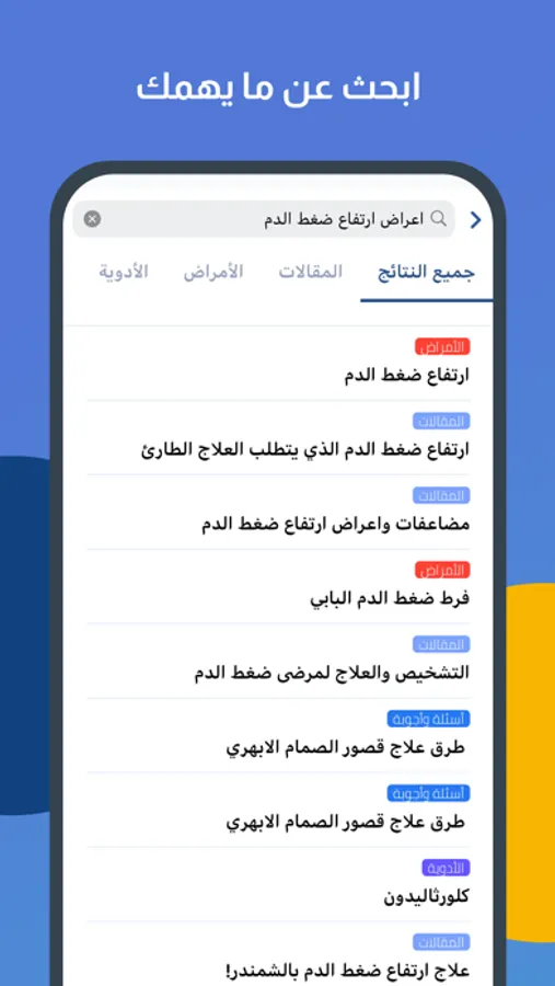 - محرك بحث يتيح لك تصفح المحتوى الذي تريد بسهولة، عبر فئات صحية درسناها بعناية لتجيب على أسئلتك جميعها.