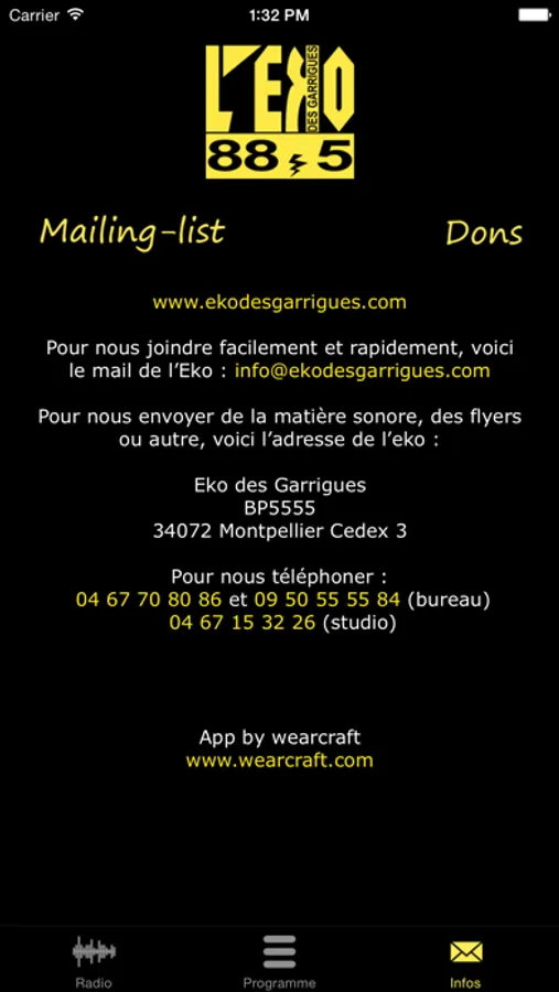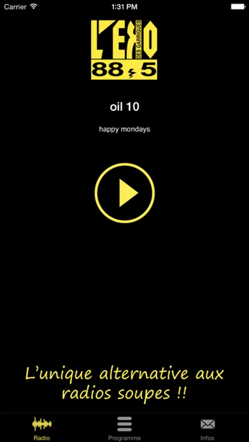 Voila pourquoi, garant de l’aioli, des sardines, de l’huile d’olive et du rockfort, l’eko des garrigues demeure en toute indépendance l’unique alternative aux radios soupes, souhaitant par la même vous envoûter d’un milliard de saveurs...