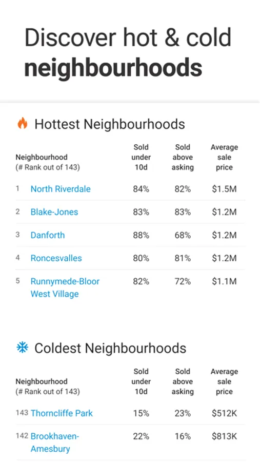 REAL-TIME MARKET TRENDS - See housing stats like average price, growth, days listed, inventory, solds, etc.