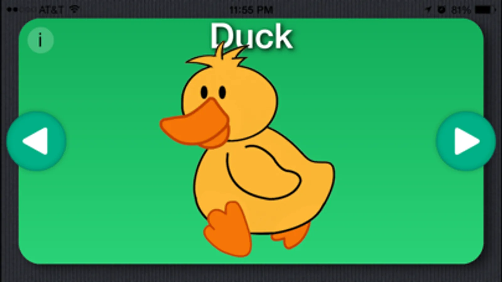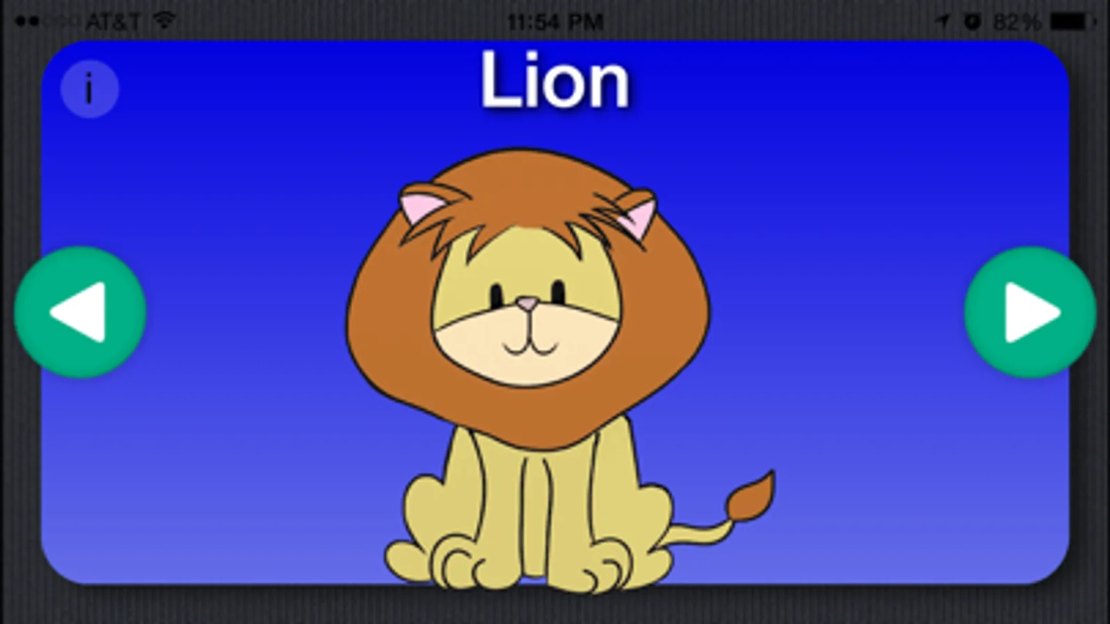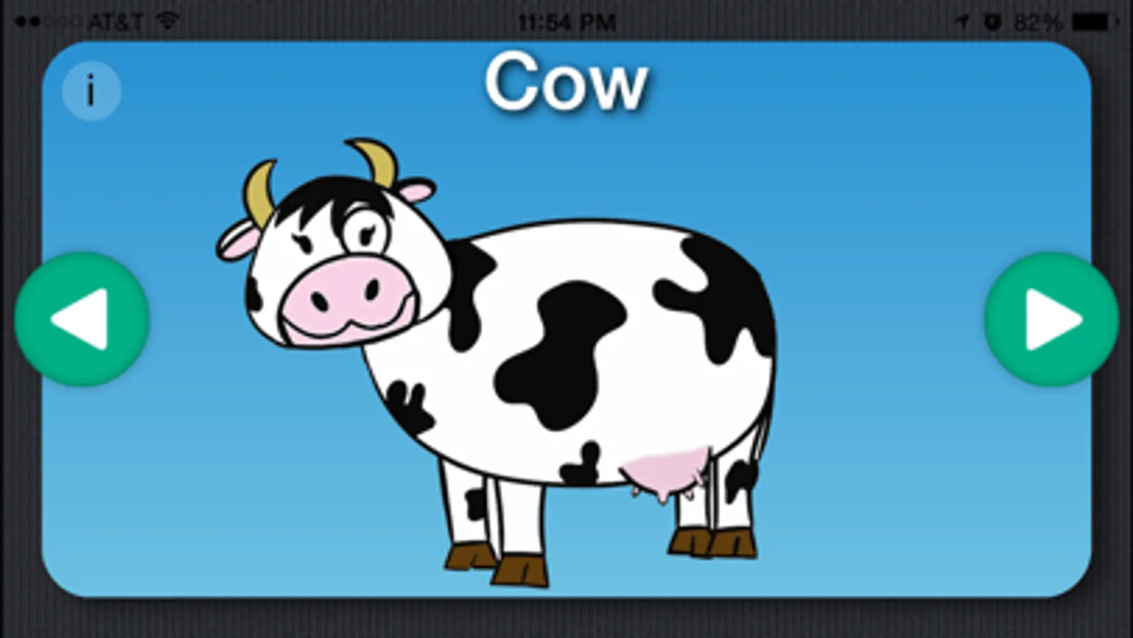 Cute animations of 6 animals with the animal name pronounced in one of 7 currently available languages (English, Spanish¹, German, Italian, French, Norwegian and Russian) and then the actual animal sound.