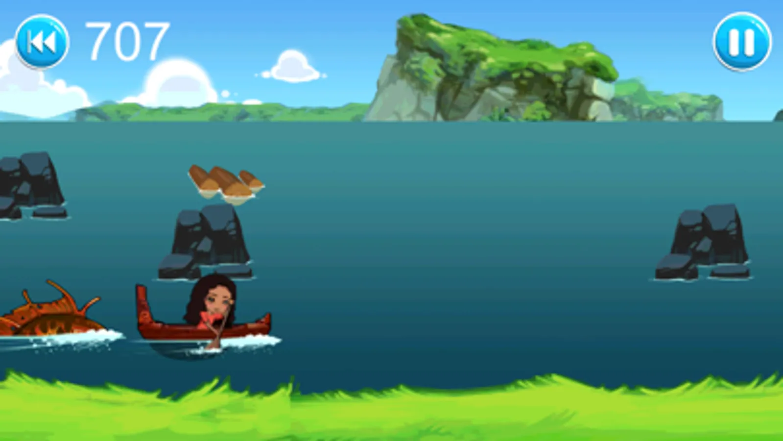 Once gamers select their character, the game starts by players paddling down river in a canoe which involves swiping left or right in a scrolling mini game that has 3 lanes. The lanes contain obstacles that must be avoided by changing to a lane with a clear path.