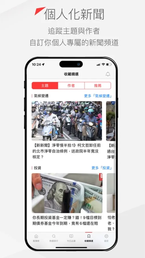 瀏覽文章的同時,可以針對自己喜歡的主題做追蹤,甚至可以追蹤自己喜歡的作者,所有你關注的新聞都會呈現在「收藏精選」頁面。